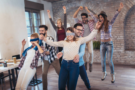 16、有呀,给你出一个小游戏,每个部门出几个人,然后出一个领队,负责监视其他部门,然后以部门为队分组,用布条蒙上眼睛,大家站在一起,每个人都发一张扑克牌注意不能有一样大小的,然后每个人只能知道自己的牌是多少。